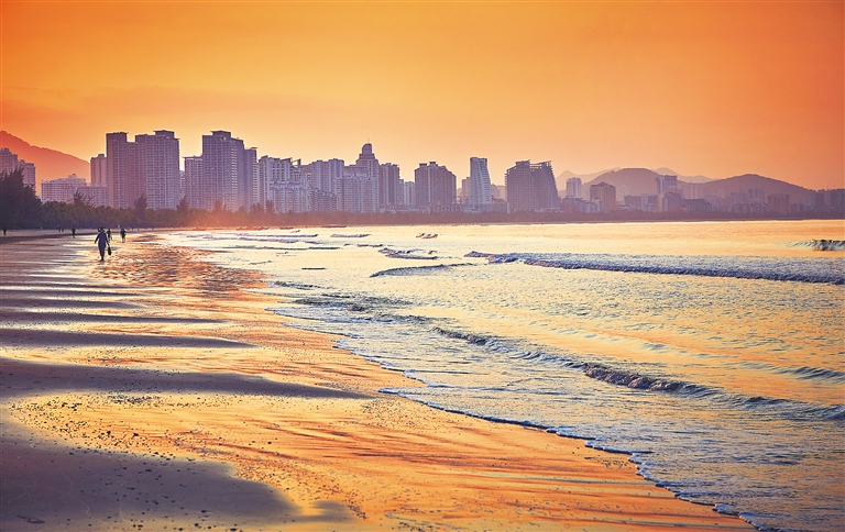 开放,是三亚最强音符,也是最大亮色。三亚是一座海纳百川、开放包容的城市,这里以博大胸襟,拥抱四海来宾,凤凰机场的航线连接全球,59国游客可实行落地免签,邮轮母港停泊外国游轮,海上游和海岛游展示无限前景。在碧绿的海面上,成百上千艘游艇来回穿梭,彩虹飞架,白帆飘拂,蓝天、碧海、欢歌,交相辉映,天堂般的美感,映入眼帘,醉美心间。享誉全球的世界小姐选美比赛,曾经在三亚举行了六次赛事,不仅靓丽了这座城市,也推动了美丽经济。平素时光,不论是东方夏威夷的亚龙湾畔,碧波荡漾的大东海滨,旖旎迷人的西岛沿岸,还是景色宜人的三亚湾滩,络绎不绝的外国游客身影,形成一道道多姿多彩的美妙风景线。站在鹿峰顶上,整个三亚湾尽收眼底,海天时远,云霞尽染,花叶相扶,人间静好,唯美如此。夜色降临,虹霓初上,三亚海月广场热闹非常,人们纵情地唱歌跳舞,演奏乐器,结伴沙滩漫步,伴随着海涛声声,三亚湾灯光绵延望不到头,如长龙在舞动,尤显神奇。