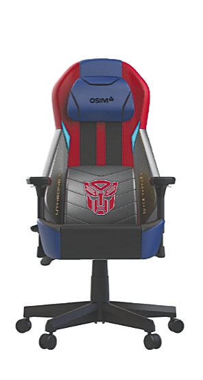 既然是变形金刚联名款,当然要用经典的蓝红黑和黄黑配色。展会上,两位变形金刚造型的“主角”刚刚亮相,便吸引不少参展者上前尝鲜——一坐下去,瞬间就感受到这一人体工学设计座椅强大的“包裹感”。大角度的后仰功能,让座椅随时可倾斜至约145度,独创的V手科技还能模拟真人按摩师手法,带来更舒适体验。
