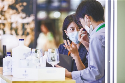 在位于3号馆的诺迪思展馆,工作人员为嘉宾介绍该品牌酒类饮品。本报记者 封烁 摄