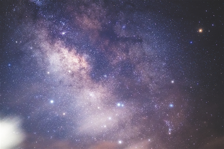 夏季的天空中,最令人期待的就是银河了。这条横跨天际、纵贯南北的乳白色光带蔚为壮观。它如同一条奔腾的河流,大小星座群星璀璨,星光熠熠。