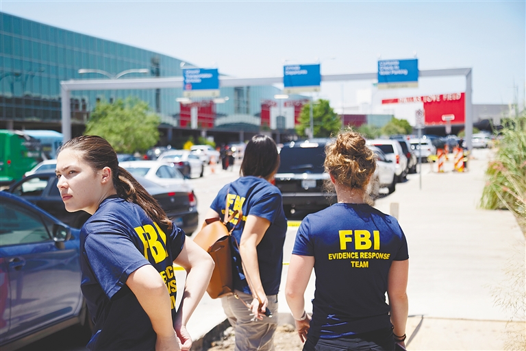 7月25日,美国联邦调查局工作人员在得克萨斯州达拉斯的案发现场附近工作。