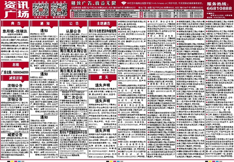 海南琼山建筑工程公司现向我局申请土地证遗失补办业务,该宗地位于海口市琼山区凤翔街道办事处凤翔社区居委会振发一路20号,面积13346.67平方米。经调查,该申请人持有的土地证,证号为琼山籍国用〔2003〕第01-00024号,已登报遗失,现我局通告注销该证,上述土地证将不再具有法律效力。凡对此有异议者,请自通告发布之日起十五日内向我局琼山分局提出书面申述,逾期无异议,我局将依法补发上述宗地新的《不动产权证》。特此通告。联系人:陈善森,电话:65809395。