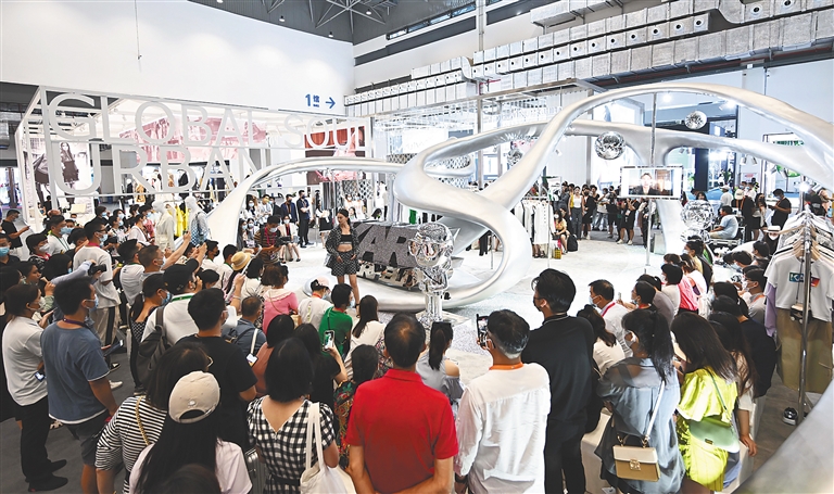 ①消博会二号展馆举行模特走秀,现场观众云集。