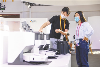 在“华夏风物”馆,媒体记者了解扫地机器人的特点。 本组图片均由 本报记者 李天平 摄