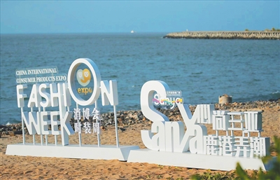 7月28日,第二届中国国际消费品博览会时装周三亚主题日活动在海南国际会展中心举行。活动以“心尚三亚·鹿港弄潮”为主题,邀请Ribyeung、BronzeLucia和KINGWEN设计师品牌带来时尚、潮流,同时体现三亚元素的新品走秀活动。