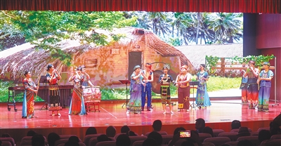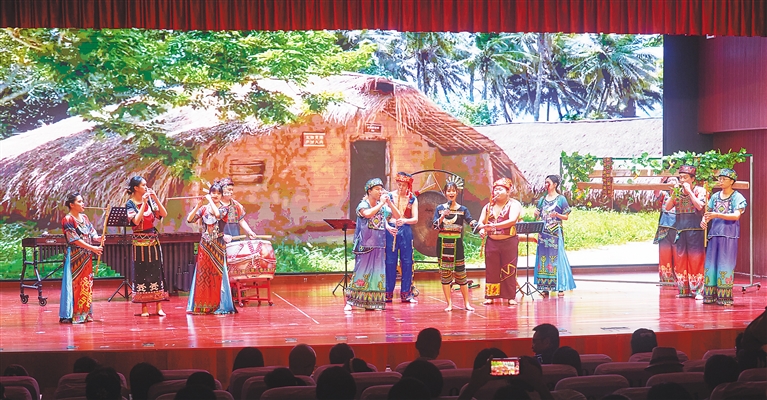 7月28日晚,海南首个黎族民间器乐表演人才高级研修班的学员在海南师范大学举行结业汇报演出。学员们通过演奏鼻箫、灼吧等黎族特色乐器,为现场观众带来一场精彩的视听盛宴。