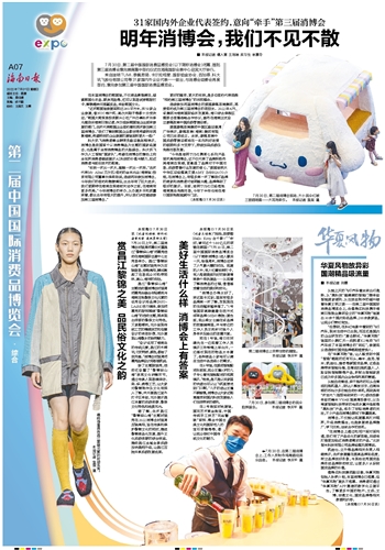 消博会,不仅能让观展嘉宾打开眼界,升级消费理念,也是参展商品牌推广、学习交流、洽谈合作的良机。