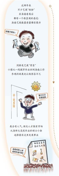 “海南在设计、艺术领域的需求在快速增长。基于这种变化,我们从2019年开始,增设招收了设计学一级学科硕士点、艺术硕士专业学位点,服务海南自贸港发展所需,为海南文化艺术事业发展提供高质量人才。”海南师范大学美术学院院长张引说。