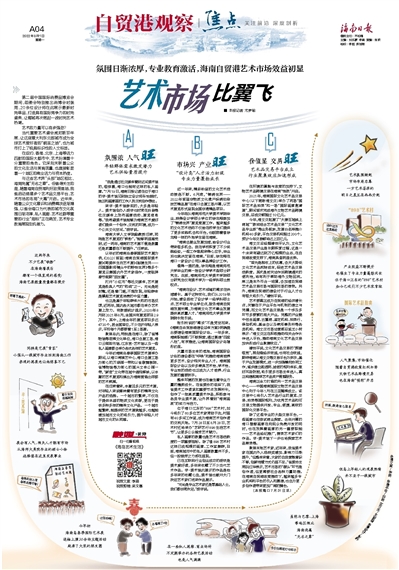 聚焦本地艺术家,近年来,我省美术家在国内外入选获奖增加、影响力日渐提升,“但整体来看,大家的自我营销意识不够,创新传播方式仍显不足。”省美协主席阮江华表示,艺术市场的“源头”环节是创作者,但更需要社会各种力量助推。在海南自贸港政策推动下,越来越多专业机构和平台的引入和搭建,也会为更多创作者带来更加广阔的舞台。