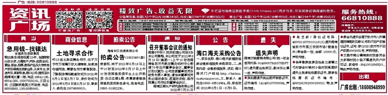 受委托,将于2022年8月16日10时至2022年8月17日10时在阿里拍卖平台上公开拍卖:白云边酒4箱;有意者请登录阿里拍卖后报名参与。咨询电话:0898-31982239。