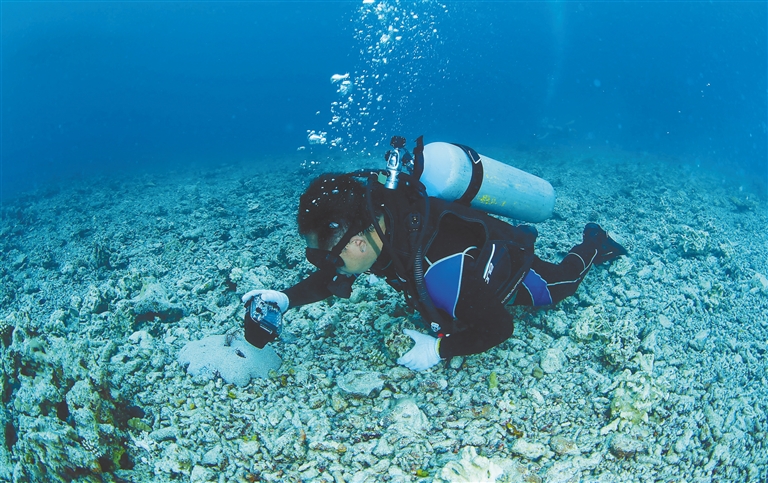 从泡沫船爬上木船,带着设备纵身一跃,下潜至五彩斑斓的海底,“种”下一株株珊瑚苗。从业30多年来,这套动作海南南海热带海洋研究所(以下简称热海所)所长陈宏已经重复了无数次。