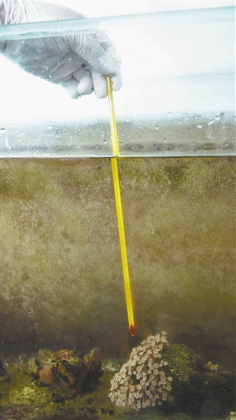 除了“种”珊瑚,陈宏还经常给珊瑚看病。“白化是珊瑚遭到破坏后的典型症状。”在热海所实验室的水箱里,陈宏为珊瑚造了一个新家,通过调控水温、培育与珊瑚共生的藻类等,让已经白化的珊瑚慢慢恢复昔日的色彩。