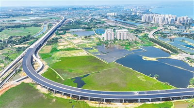 近日,航拍正在铺设沥青的G15沈海高速公路海口段项目。