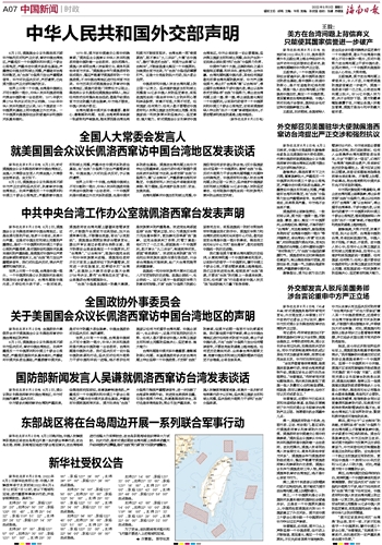 全国人大常委会发言人 就美国国会众议长佩洛西窜访中国台湾地区发表谈话