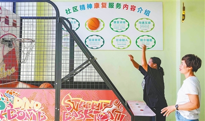 玩篮球、拼积木、开圆桌会……8月2日,澄迈县社区精神康复中心大厅内,一片欢声笑语,前来进行精神障碍康复的学员们正在进行有趣的互动。