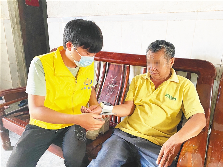 “下次过来能帮我代买些酱油和青菜吗?上次检查后,你告诉我饮食要清淡,我最近都吃得素了些。”8月2日,在澄迈县金江镇大美村,该村老人王澄儒对居家养老护理员王哲海说。