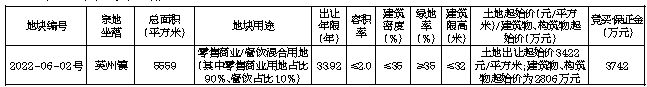 (二)该宗地属英州商业街历史遗留问题项目用地,不设定投资强度指标,年度产值及年度税收按照原海南省国土资源厅、海南省发展和改革委员会等《关于印发海南省建设用地出让控制指标(试行)的通知》(琼国土资规〔2018〕7号)有关规定执行,该宗用地不在省级六类产业园区范围内,年度产值不低于450万元/亩,年度税收不低于12万元/亩。