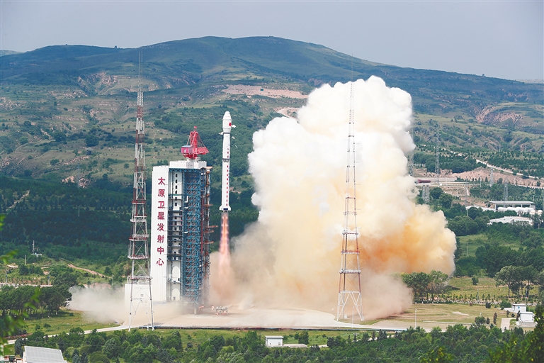 8月4日11时08分,我国在太原卫星发射中心使用长征四号乙遥四十运载火箭,成功将陆地生态系统碳监测卫星以及搭载的交通四号卫星和闵行少年星顺利送入预定轨道,发射任务获得圆满成功。新华社发(郑斌 摄)