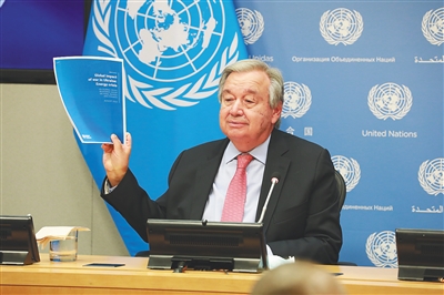 联合国秘书长古特雷斯3日呼吁各国政府向从当前能源危机中获得巨额利润的大型石油和天然气公司课税。新华社记者 谢锷 摄