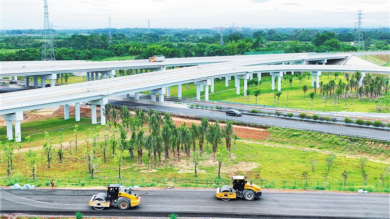该项目作为海南“丰”字型公路网中的第一横,途经文昌、海口、定安、澄迈和临高,全长121.88公里,预计今年底建成通车。本报记者 张茂 实习生 吴渝 摄