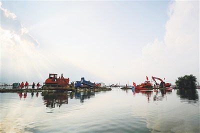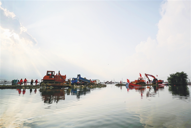 经现场抢险人员连续5天奋战,辽宁绕阳河溃口封堵完成合龙。至此,发生在辽宁省盘锦市域内的绕阳河左岸曙四联段国堤溃口抢险取得重大进展。新华社记者 潘昱龙 摄