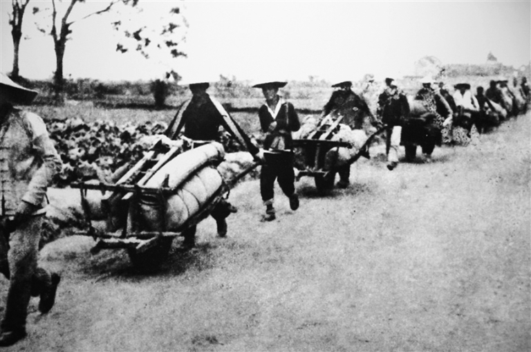 淮海战役期间,张云逸把支前工作做得有声有色,为保障战役的胜利作出了重要贡献。淮海战役支前工作有一个突出的特点,那就是数十万民工日夜兼程奔走千里往前线运输物资。陈毅曾感慨地说,淮海战役的胜利是民工用小车推出来的,没有人民群众的支援,取得如此丰硕的成果是不可想象的。而这一切又与张云逸的精心组织安排分不开。