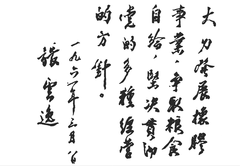 回到北京后,张云逸仍然记挂着此事,多次给当时的文昌县委书记、县长写信,为家乡建设发展、乡亲们脱贫致富出谋划策。此次纪念展现场展出的信件便是其中一封。张云逸在信中写道:“我这次回乡沿途看到县中荒地荒坡不少,土地潜力还大,因此向你们提以下意见,供为参考。一、注意发展种植椰子和油棕作物……”这封信一共写了三页纸,在结尾部分他还不忘提醒:“如果发现有不符实际情况的话,则将这封信作废,请你们最终决定。”并在落款处写下“你们的同志张云逸”及自己的通信地址,希望和对方保持联系。