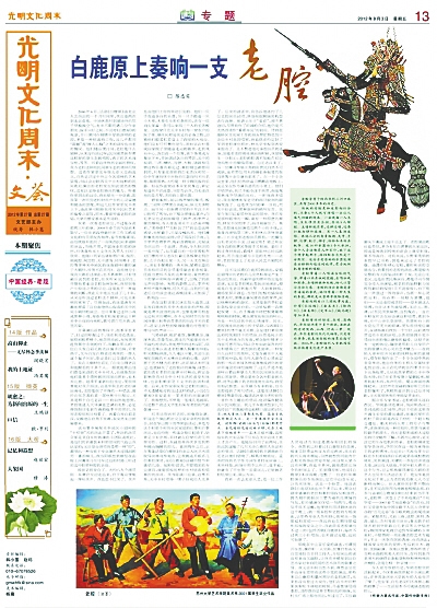 因为陈忠实的鼎力推荐和精心编词,话剧和电影版《白鹿原》中都有陕西华阴老腔的演出,从而使得濒临消亡的陕西华阴老腔起死回生。在得知陈忠实逝世之后,陕西华阴老腔艺人带着深深的悲悼与恋恋的不舍来到陕西作协大院,以高亢、悲凉的华阴老腔来祭奠陈忠实。年过半百的老艺人含泪吟唱,边唱边喊:“先生,我们再给您唱一遍您最爱的老腔,您听到了吗?”