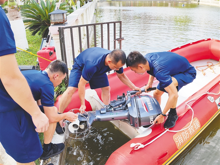 8月9日,为应对今年第7号台风“木兰”(热带风暴级),万宁市消防救援大队紧密结合辖区实际,积极备战,全力做好各项应急救援准备工作。本报记者 袁琛 通讯员 苏贝雅 文/图