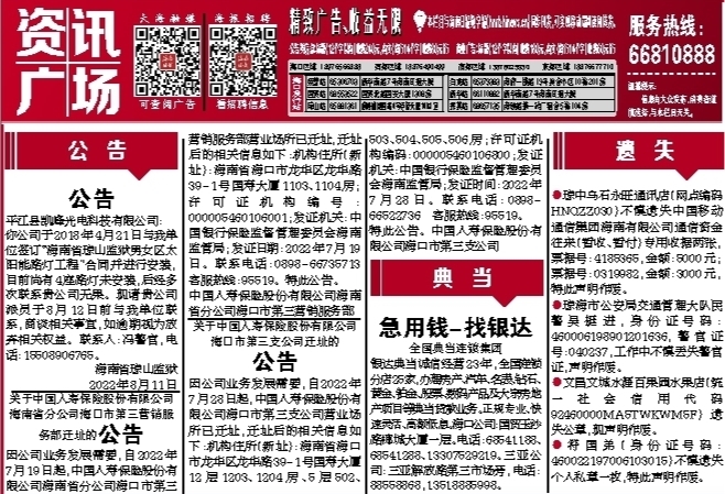 特此公告。中国人寿保险股份有限公司海口市第三支公司
