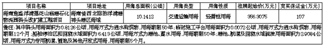 二、竞买事项:(一)中华人民共和国境内的法人、自然人或其他组织满足以下条件的均可报名参加竞买(除法律、法规另有规定的除外),申请参加竞买者须提出书面竞买申请,并按照要求提供相关材料。(二)提供时点在公告期间不低于人民币400万元的银行资信证明,并缴纳竞买保证金人民币107万元(约按底价的30%计算)。保证金账户名称:儋州市公共资源交易服务中心;开户行:建设银行儋州支行营业部;账号:4605010062360000 0184。(三)本次挂牌出让设有底价,按照价高且不低于底价者得的原则确定竞得人。(四)申请人可于2022年8月12日至2022年9月7日到海口市滨海大道115号海垦国际金融中心906室咨询和购取挂牌出让手册,并按挂牌出让手册的具体要求报名参加竞买。(五)交纳竞买保证金的截止时间为2022年9月7日16:00(北京时间)。经审核,申请人按规定交纳竞买保证金(以竞买保证金入账户时间为准),具备申请条件的,将在2022年9月7日17:00(北京时间)前确认其竞买资格。(六)挂牌时间:2022年8月30日8:30至2022年9月9日11:00(北京时间)。(七)挂牌地点:儋州市公共资源交易服务中心开标室1(海南省儋州市那大镇怡心花园D15号)。(八)组织交易:根据受让方征集情况,确定交易方式,若只征集到一名意向受让方,采取挂牌方式交易;若征集到两名及以上意向受让方,采取拍卖竞价方式交易。(九)本次竞买活动挂牌报价阶段只接受书面报价,不接受电话、邮寄、电子、口头等其他方式报价。三、项目用海管控要求:(一)根据该宗用海海域论证相关内容阐述,在洋浦港神头港区神北三港池建设海南逸盛洋浦莲花山临港石化物流园码头改扩建工程,满足海南逸盛石化有限公司二期250万吨PTA项目和200万吨的PET项目,保证后方厂区原料的及时供给,满足生产需要和产品水运需求。(二)严格按《洋浦经济开发区生态环境局关于批复海南逸盛洋浦莲花山临港石化物流园码头改扩建工程环境影响报告书的函》(浦环函〔2022〕4号)和海域论证要求进行建设,竞买人需加强监视监测,保证海洋环境和生态符合海洋功能的水质、生境、保护目标等管控要求。(三)竞买人必须出具承诺书。(四)其他未尽事宜,按海洋环境和海域管理要求执行。四、其他事项:(一)签约成交。确定竞得人后,出让人根据交易机构的《成交确认书》,与竞得人在3个工作日内签订《海域使用权出让合同》。(二)结算交割。签订《海域使用权出让合同》1个月内到儋州市税务指定的非税收入专户足额缴纳海域使用金。(三)办理不动产权证书。儋州市不动产登记中心凭《海域使用权出让合同》和海域使用金交纳等相关凭证依法办理不动产权证书。(四)本次挂牌出让事项如有变更,以届时变更公告为准。(五)本公告未尽事宜详见本次海域使用权挂牌出让手册,该手册所载内容为本公告的组成部分。(六)联系方式: 0898—65203602 13398975899。
