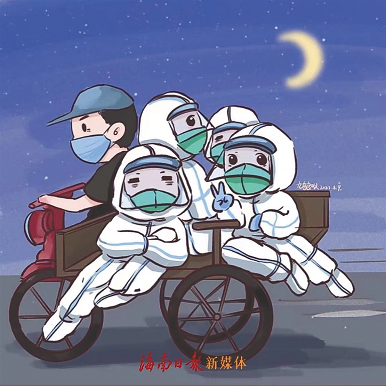 本报海口8月12日讯(记者蔡曼良)8月12日,海南日报新媒体中心联动“90后”插画师鸠良啾(刘思思)推出《海南抗疫“画册”》。疫情当前,身处三亚的鸠良啾在见证海南抗疫中一个个动人瞬间后,用手中的画笔,深情绘就了这份特别的“画册”,定格众志成城齐抗疫的爱与付出。