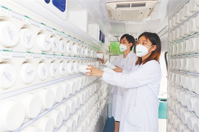 据介绍,由四川新绿色药业科技发展有限公司支援我省新冠肺炎救治的流动应急智能中药房,外形酷似救护车,内部侧壁上整齐排满装有中药的小圆盒,可配发近400味中药配方颗粒,能满足一家中医院常规处方使用。药剂师可以通过药房内的电脑,根据处方及时配药,保障方舱医院用药需求。