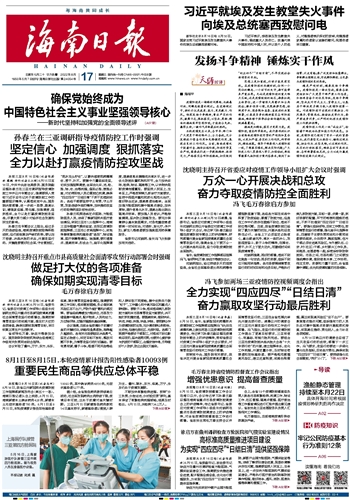 本报三亚8月16日电(记者陈蔚林 黎鹏 特约记者王江顺)8月15日至16日,中共中央政治局委员、国务院副总理孙春兰在三亚市调研指导疫情防控工作并召开专题会议,强调要深入贯彻习近平总书记关于疫情防控工作的重要指示精神,认真落实党中央、国务院决策部署,进一步统一思想、提高认识,增强紧迫感、责任感,加强调度,狠抓落实,全力以赴打赢疫情防控攻坚战,尽最大努力减少对经济社会发展和民生的影响。