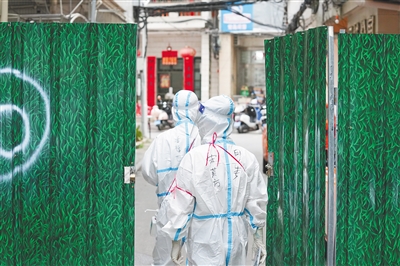 8月16日,在三亚市吉阳区港门村社区,志愿者“大白”准备进入封控区域开展工作。本报记者 武威 摄