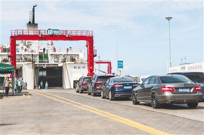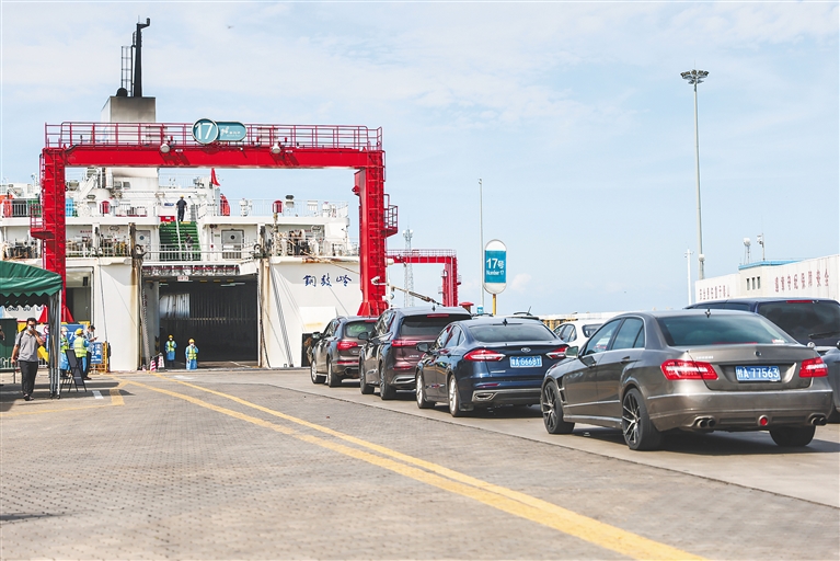 ② 8月16日,自驾车辆在海口 新海港排队登船。新华社发