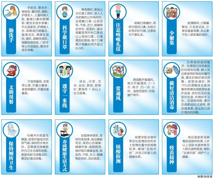 按要求配合做好常态化疫情防控和本土疫情处置中的核酸检测,确保“应检尽检”,对自己和家人的健康负责。