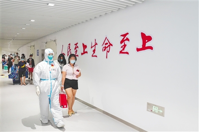 8月21日,三亚第三方舱医院,首批患者治愈出院。本报记者 武威 摄