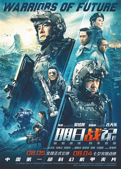 近日上映的《明日战记》以“末世+机甲+科幻”为题材,将背景故事设置在未来世界。机甲即“机械动力装甲”,一般出现在科幻或超现实的影视剧、游戏和小说中。《明日战记》中,由于环境不断恶化,空气中充满有害物质。一颗坠落地球的陨石带来具有杀伤力的外星生物“潘多拉”。在人类生死存亡之际,机甲战士泰来(古天乐饰)、郑重生(刘青云饰)挺身而出,为了守护地球殊死一战。