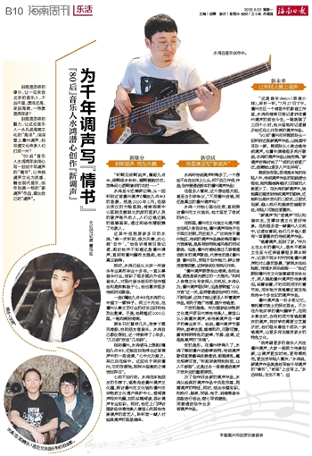 “80后”音乐人水鸿潜心创作“新调声”~~~