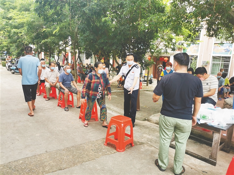 类似的情景,不仅发生在白沙。在此次支援儋州抗击疫情志愿活动中,白沙税务局有5名青年志愿者参与其中。他们参与到高风险小区值守、全员核酸检测、社区物资配送等工作中,与当地防疫人员齐心协力筑牢疫情安全防线。