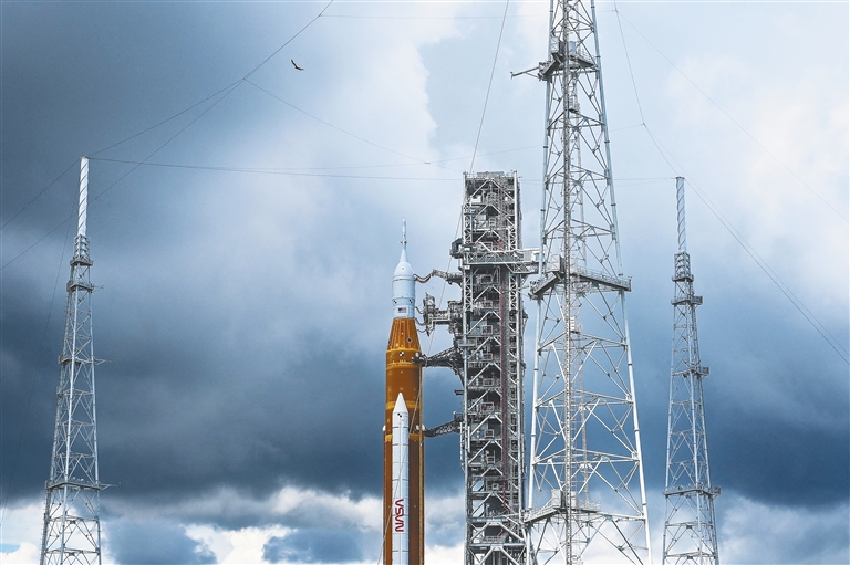 8月26日,在美国佛罗里达州肯尼迪航天中心,美国新一代登月火箭在39B发射台上。