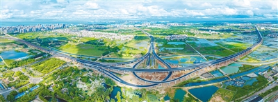 近日,G15沈海高速海口段项目积极落实各项疫情防控措施,有序推进项目建设。据悉,项目构建了工地、驻地联防一体的防疫体系,实行“闭环管理”。图为该项目海秀互通俯瞰。本报记者 李天平 摄