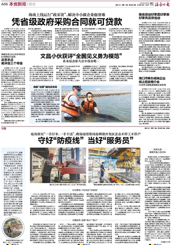 本报海口8月31日讯 (记者王培琳)中小微企业凭借省级政府采购合同就可贷款。海南日报记者8月31日从中国人民银行海口中心支行获悉,近日,中国人民银行海口中心支行会同海南省财政厅,推动海南省政府采购管理系统(以下简称政府采购系统)与中征应收账款融资服务平台(以下简称中征平台)已完成对接,充分利用中征平台的融资功能,为中标政府采购项目的中小微企业提供“政采贷”线上融资服务。