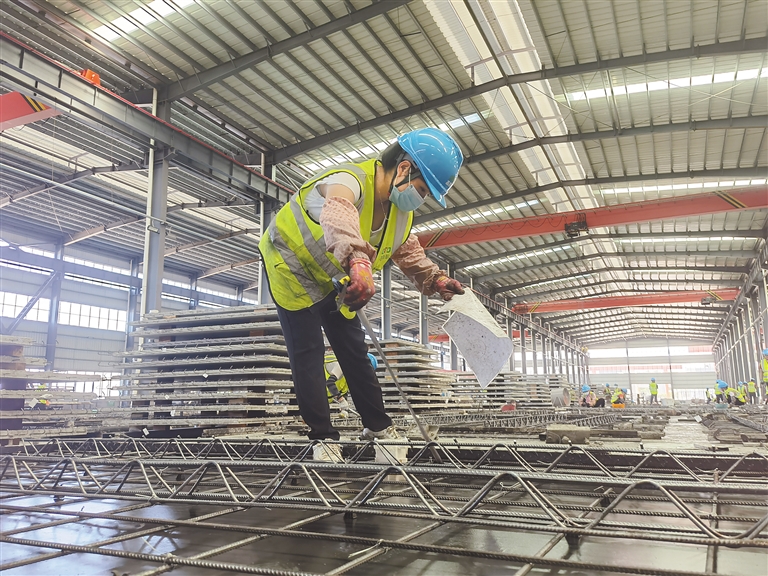 8月29日下午,临高金牌港开发区企业海南志特新材料有限公司(以下简称志特公司)生产车间,工人们正在热火朝天地生产混凝土预制件。“疫情刚发生时,非常担忧工厂会全面停工停产。但实际上从8月初疫情发生以来,在县政府的帮助下,我们没有停工一天。”总经理韩国平介绍,公司8月产值约750万元,环比7月增长约15%,同比2021年8月增长约30%,在疫情之下仍然实现了进一步发展。
