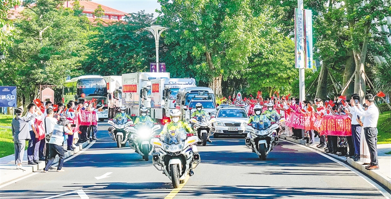 9月1日,阳光和煦,圆满完成抗疫各项任务后,山西援琼医疗队的376名队员踏上返程之路。在儋州公安铁骑的护送下,载着医疗队员的车辆缓缓驶离,道路两旁的干部群众向队员们挥手告别。