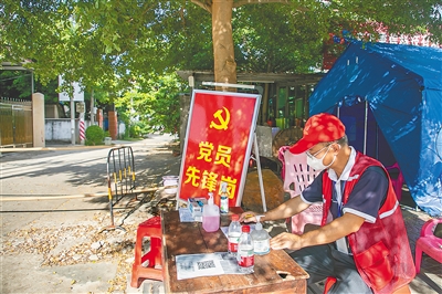 8月24日,在东方市八所镇小岭村的一处高风险区,周围已被物理隔离封锁,拉上警戒带,有2名工作人员在外围24小时值守。“封条可防止隔离人员擅自外出。我们会不定时查看封条,及时了解人员动向。”小岭村第十网格临时党支部书记尹艳娜说。