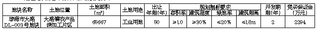 根据琼海市人民政府《关于琼海市大路DL-003号地块具备净地出让条件的证明》,琼海市大路DL-003号地块土地权利清晰、安置补偿落实到位、地上附着物清表、无法律经济纠纷、土地开发利用规划条件明确、符合土壤环境质量要求、具备动工开发所必需条件。按照《海南省国土资源厅 海南省发展和改革委员会 海南省规划委员会 海南省工业和信息化厅 海南省财政厅 海南省商务厅 国家税务总局海南省税务局关于印发〈海南省建设用地出让控制指标(试行)〉的通知》(琼国土资规〔2018〕7号)有关规定,琼海市大路DL-003号地块的投资强度不低于250万元/亩,年度产值不低于507.6万元/亩,年度税收不低于20万元/亩。项目约定达产时间为签订《国有建设用地使用权出让合同》后的3年内。以上控制指标和达产时间按规定列入《产业项目发展和用地准入协议》,属于协议内容的组成部分,竞得人应严格履行协议内容。二、竞买要求及条件:(一)中华人民共和国境内外的自然人、法人和其他组织均可申请参加(除法律法规另有规定外),仅限单独申请,不接受联合申请(注:失信被执行人不得参加本次竞买)。(二)本次国有建设用地使用权挂牌出让设有底价,按照报价最高且不低于底价的原则确定竞得人。(三)申请人竞得土地后,拟成立项目公司进行开发建设的,竞得人在项目公司中出资比例不得低于50%(不含50%)。(四)竞得人在签订《挂牌成交确认书》之日起5日内,由竞得人成立的项目公司或竞得人与琼海市科学技术工业信息化局签订《产业项目发展和用地准入协议》,并在签订《产业项目发展和用地准入协议》后与琼海市自然资源和规划局签订《国有建设用地使用权出让合同》,依法办理土地登记手续。三、申请人可于2022年9月2日至2022年10月9日到琼海市土地储备整理交易中心(或海南省公共资源交易服务中心一楼受理大厅3号窗口)查询和获取挂牌出让文件。也可从海南省建设用地使用权和矿业权网上交易系统(以下简称网上交易系统,网址:http://lr.hainan.gov.cn:9002)查看和打印。四、申请人可于2022年9月2日至2022年10月9日到琼海市土地储备整理交易中心提交书面申请。交纳竞买保证金的到账截止时间为2022年10月9日17:00。经审查,申请人按规定交纳竞买保证金,具备申请条件的,我局将在2022年10月10日17:00前确认其竞买资格。五、本次国有建设用地使用权挂牌出让地点:海南省政府会展楼二楼省公共资源交易服务中心土地交易厅,挂牌时间为:(一)起始时间:2022年9月23日 8:30。(二)截止时间:2022年10月11日16:00。六、其他需要公告的事项:(一)本次挂牌出让实施机构为琼海市土地储备整理交易中心,详细情况请登录:http://www.landchina.com、http://zw.hainan.gov.cn/ggzy/、http://Ir.hainan.gov.cn。本次挂牌事项如有变更,将在以上网站公告,届时以变更公告为准。(二)本次挂牌出让竞买报价只接受书面报价,不接受电话、电子邮件、口头等方式报价,节假日不受理报名、报价。七、联系方式:联系地址:琼海市金海路233号;联系电话:0898-62811911;联系人:蔡先生。八、本公告未尽事宜,详见挂牌出让文件,该文件所载内容为本公告的组成部分。