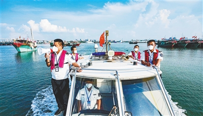 近日,在儋州市白马井镇至排浦镇海域,儋州市综合行政执法局执法人员开展执法巡查。