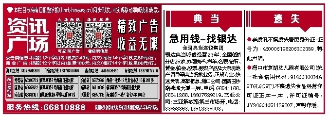 银达典当诚信经营23年,全国连锁分店25家,办理房产、汽车、名表、钻石、黄金、铂金、股票、数码产品及大宗房地产项目等典当贷款业务。正规专业、快速灵活、高额低息。海口公司:国贸玉沙路椰城大厦一层。电话:68541188、68541288、13307529219。三亚公司:三亚解放路第三市场旁,电话:88558868,13518885998。